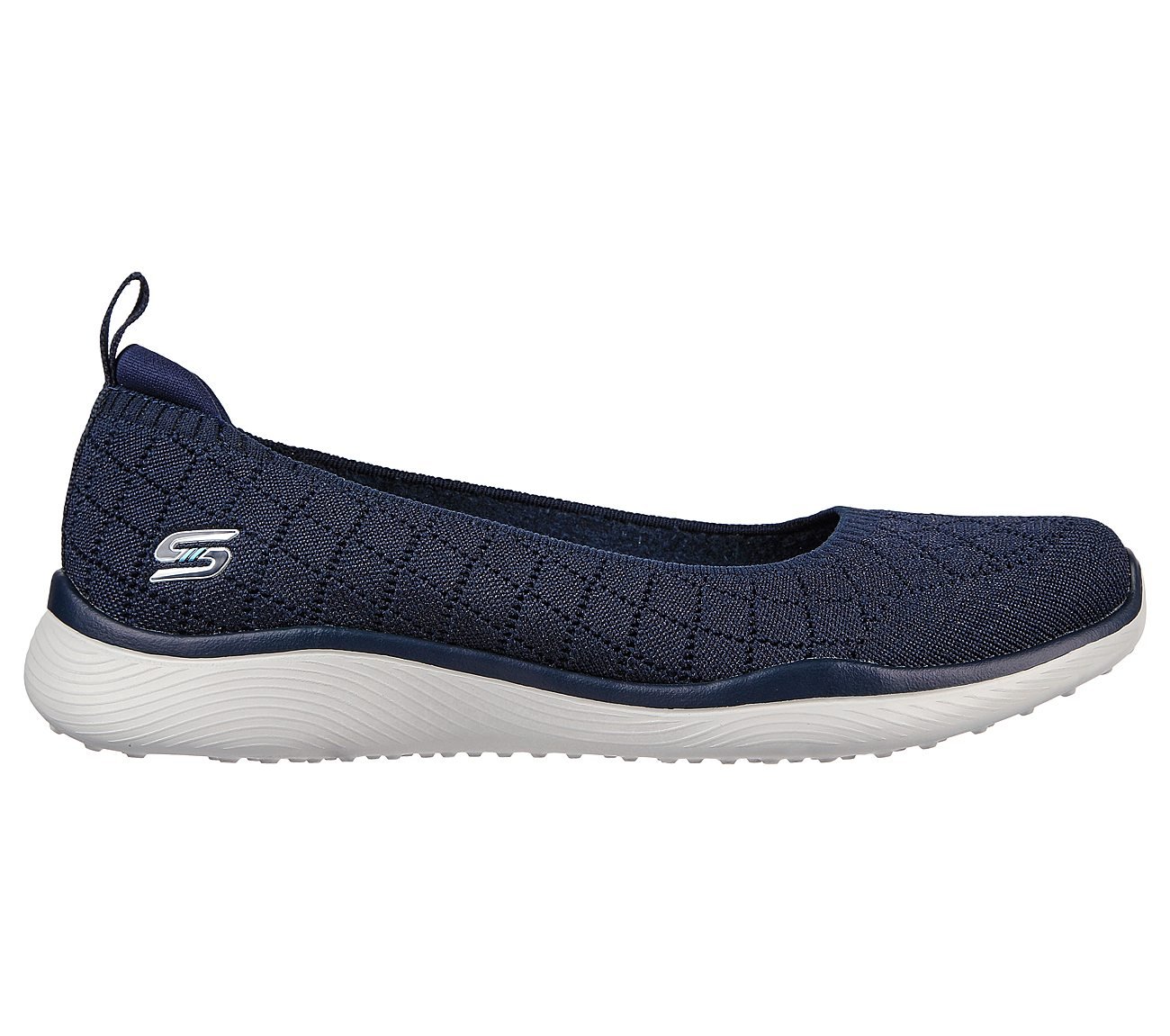 - Ease right into stretchable comfort and sporty style with Skechers Microburst 2.0. This Stretch Fit slip-on skimmer features a soft mesh upper with an Skechers Air-Cooled Memory Foam cushioned comfort insole and a lightweight Burs cushioned midsole. Construction: Soft mesh upper with glitter details on heel. Slip-on comfort walking skimmer sneaker design Flexible rubber traction outsole with Burst Grip design Machine washable 1 inch heel Skechers logo detail Details: Skechers Air-Cooled Memory Foam cushioned comfort insole Lightweight, responsive Burst Technology cushioning