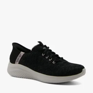 • TOUCHLESS FIT Step into easy-wearing style and comfort with Skechers Hands Free Slip-ins: Ultra Flex 3.0 – Easy Step. Designed with our exclusive Heel Pillow. This style features an engineered knit lace-up upper, plus a cushioned Skechers Air-Cooled Memory Foam insole.